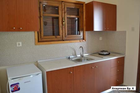 - Апартман 1/2– два единечни кревети, одвоена опремена кујна, бања, ТВ, тераса.