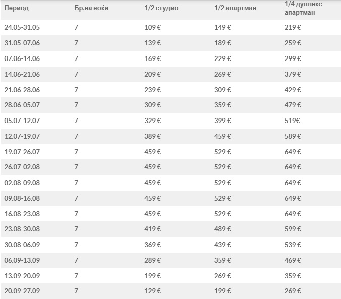- Сместувањето во апартманите и студијата е во 14:00 (по локално време);