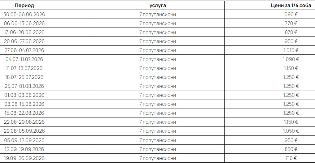 Цените се за СОБА за 7 полупансиони за 2 возрасни лица и 2 деца до 11,99 г. на редовно легло – БЕСПЛАТНО