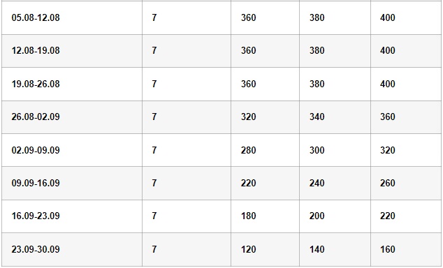 Собите се напуштаат во 9:00 ч, а сместувањето во 13:00 ч по локално време.