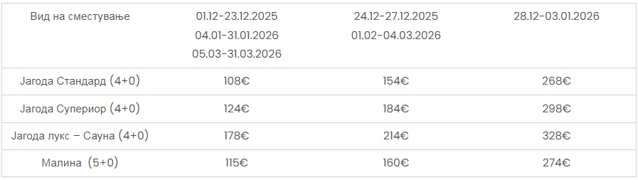 10 % попуст за рана резервација до 15.11.2025 ,важи и за доплатите за појадок и полупансион