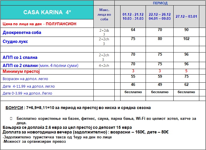 Zimovanje vo hotel Casa Karina