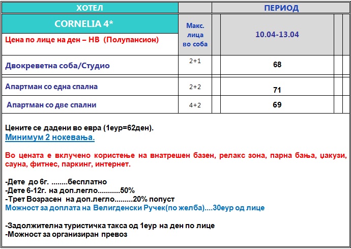 Veligden vo hotel Cornelia 4*