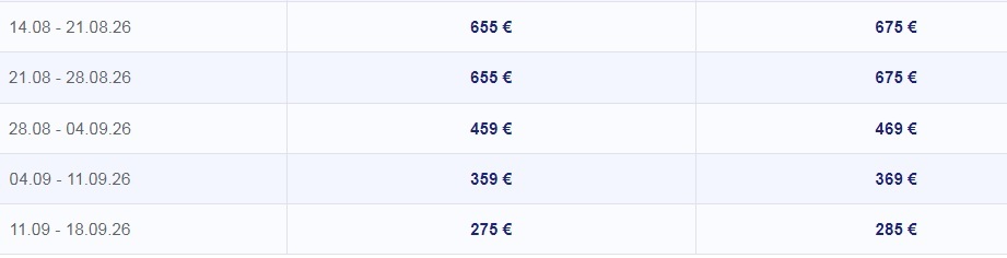 Важно: Деца од 2 до 11,99 години: попуст 10 € од редовната цена. Деца до 1,99 години бесплатно.