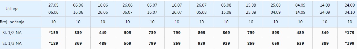 Цените се изразени во евра, (1еур=62ден.), и се дадени за наем за 10 или 11 нокевања.