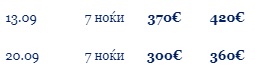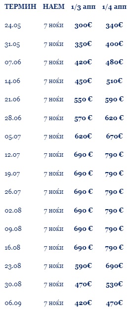 ЦЕНИТЕ во табелата се дадени за наем на студио или апартман за 7 ноќевања.