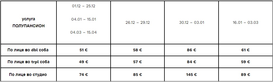 Доплата за Новогодишна вечера (задолжително) 85€ / возрасен 44€/ дете 2 до 11,99 г.
