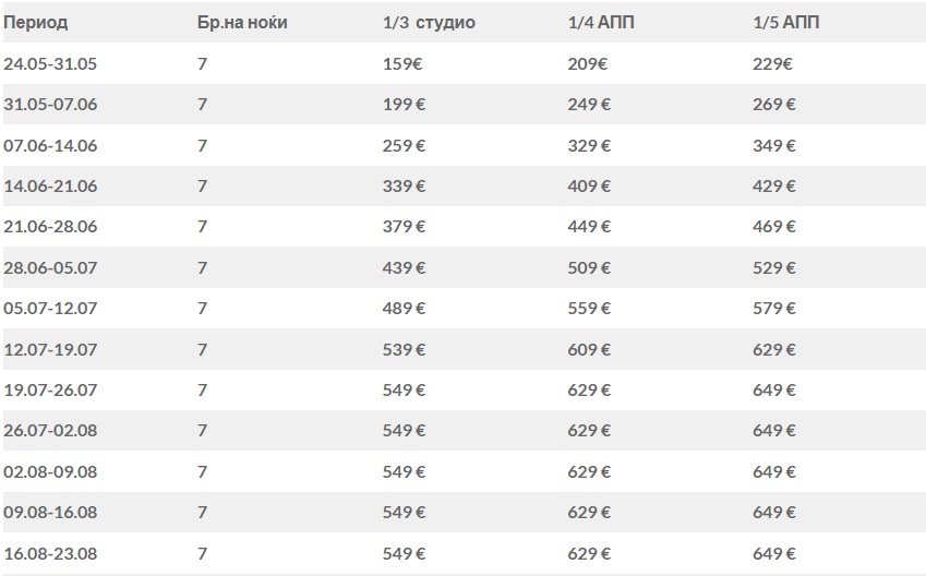 - Сместувањето во апартманите и студијата е во 14:00 (по локално време);