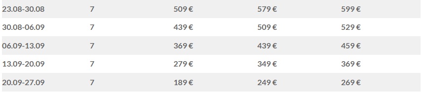 - Клима уредот е вклучен во цената, освен во месец мај, јуни и септември (кога се доплаќа 5 евра од ден, доколку сакате да ja користите)