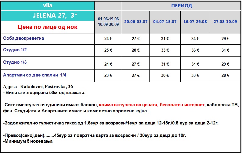 vila Jelena 27, 3*, Rafajlovici
