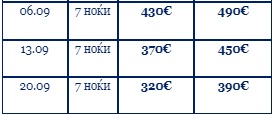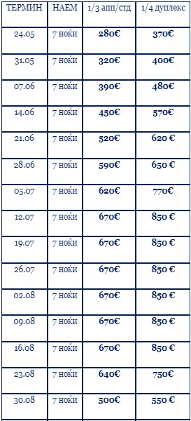 ЦЕНИТЕ во табелата се дадени за наем на студио или апартман за 7 ноќевања.