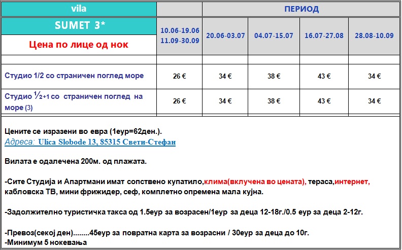 vila Sumet 3*, Sveti Stefan
