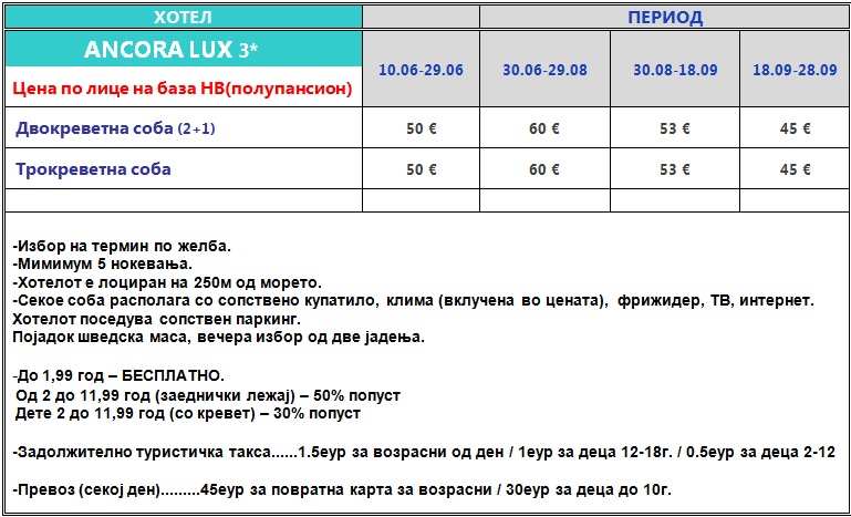 hotel Ancora Lux 3*, Canj