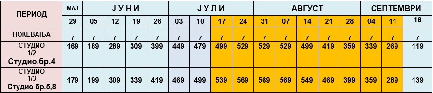 - ЦЕНИТЕ СЕ ДАДЕНИ ВО ЕВРА, (1€=62 ден.) И СЕ ЗА НАЕМ НА СТУДИО ЗА 7 НОКЕВАЊА.