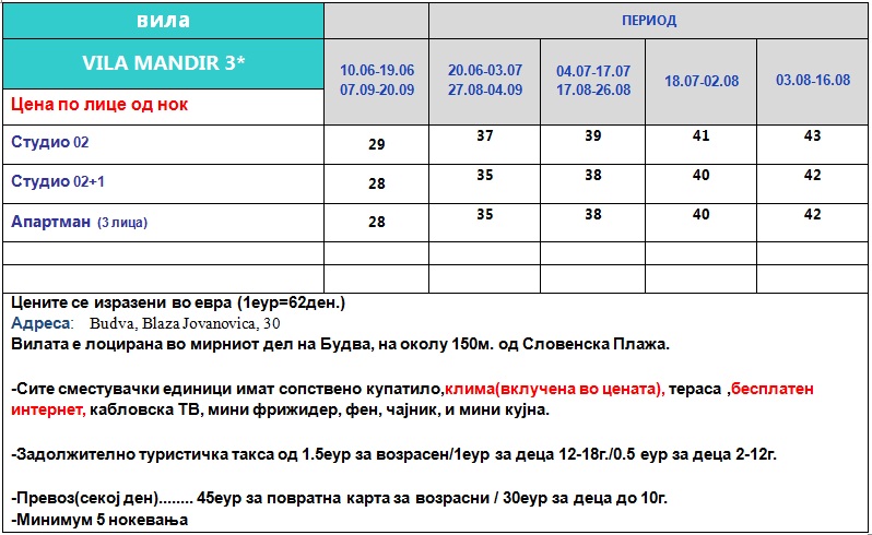 vila Mandir, Budva