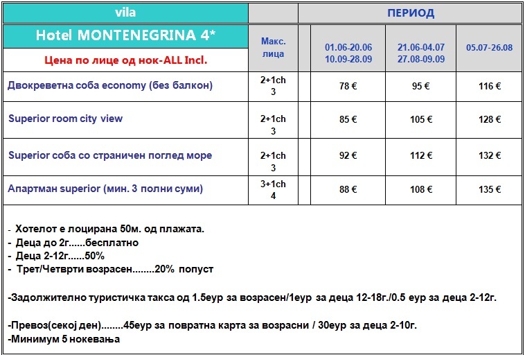 hotel Montenegrina 4*, Rafajlovici
