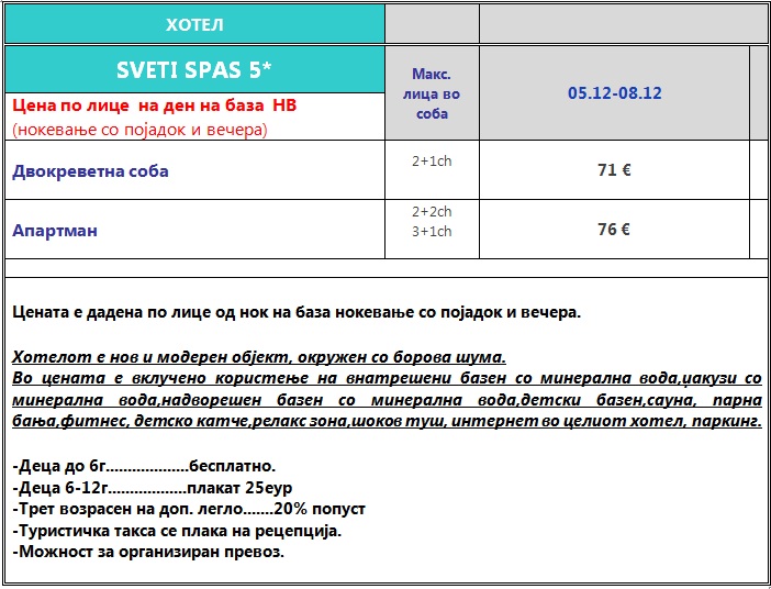 8mi Dekemvri vo Balneo Hotel Sveti Spas 5*, vo Velingrad