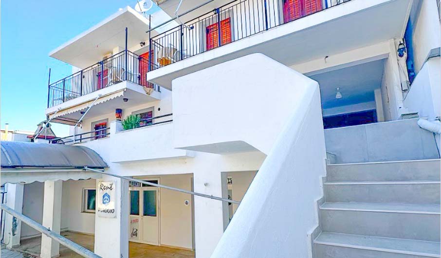 Вила “Angela Zoi” e лоцирана на 800 метри од плажата Мегали Амос, во ценатарот на градот. Вилата располага со трикреветни, четирикреветни студија како и четирикреветни дуплекс апартмани. Сите соби се со комплетно опремена кујна, тоалет, балкон, ТВ, WiFi и клима уред.