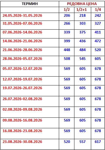 Цените се изразени во евра ЗА НАЕМ на Студио за 7 нокевања (1еур=62мкд).