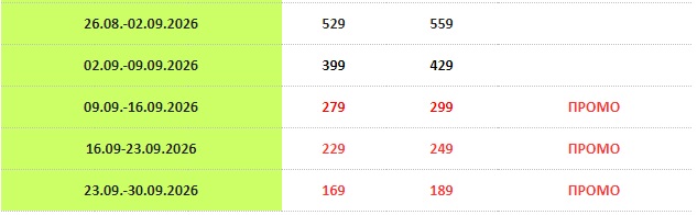 Термините кои се обележани со црвено се промотивни и не подлежат на попуст.