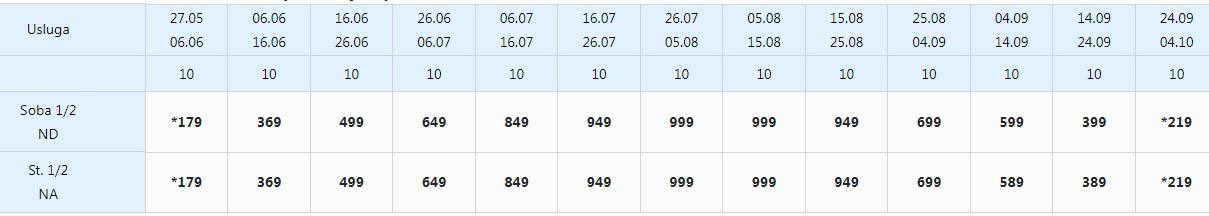 Цените се во евра (1еур=62ден), и се дадени за наем на студио за 10/11 нокевања, и за наем на соба плус појадок за гостите од собата во блискиот ресторант на Eva Beach hotel.