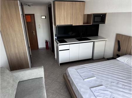 Секое студио / апартман располага со основно опремена кујна, купатило, балкон, ТВ, Wi-Fi (агенцијата не е одговорна за неговиот квалитет), клима (вклучена во цената).