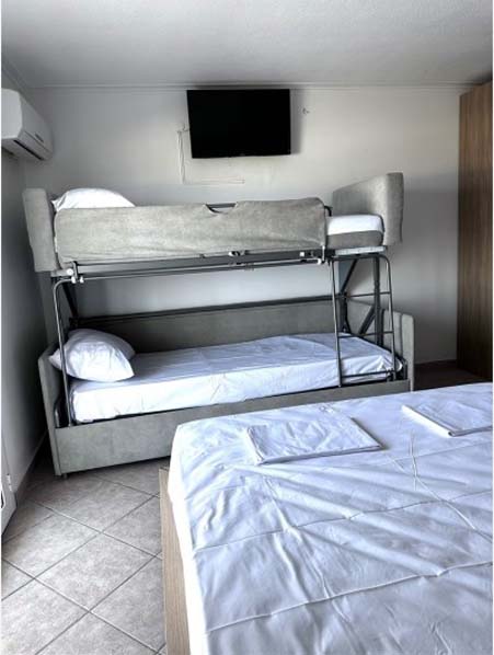 Во студио/апартман дозволено е сместување на лица согласно бројот на кревети. Дозволено е едно дете до 7год. да може да се спие помегу родителите.