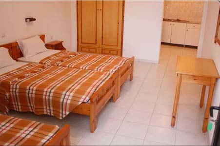 Двореветните студија е се наогат на прв спрат, а трокреветните се на приземје. и имат комплетно опремена кујна, ТВ, фрижидер, засебни купатила, клима со доплата од 7еур на ден, балкон. Сите имаат единечни кревети. Постои можност за помошен лежај во трокр. студија за дете до 5г. кое се наплака 5еур на ден.