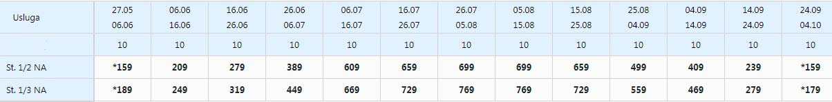 Цените се изразени во евра, (1еур=62ден.), и се дадени за наем за 10 или 11 нокевања.