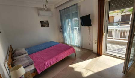 Куќа „Игуана“ е лоцирана близу игралиштето во Неа Потидеа. Оддалечена е 80 метриод плажа. Располага со четирикреветни апартмани во кој има спална соба со брачен – француски кревет и два единнечни стандардни кревета во делот каде што е комплетно опремена голема кујна, како и мезонети на две нивоа, во приземјето два софи и голема комплетно опремена кујна а на 1 кат две одвоени спални соби со по еден брачен – француски кревет и две големи тераси,ЛЦД ТВ, клима (вклучена во цената), тоалет. Во собите нема пешкири како дел од опремата.