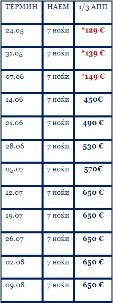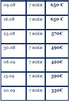 ЦЕНИТЕ во табелата се дадени за наем на студио или апартман за 7 ноќевања.