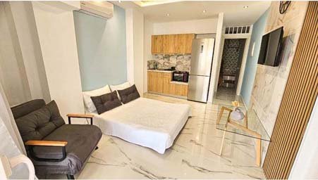 Секое студио и апартман поседува основно опремена кујна,купатило, балкон, ТВ, и клима која е вклучена во цената.