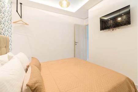 Апартманите имаат брачен лежај во спалната соба, и кауч на развлекуванје во кујнскиот дел.